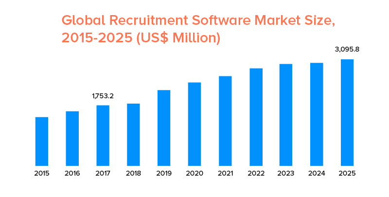 Now, seeing this growing popularity of job search apps, you might also have this moment of epiphany that you should create your own mobile app. And why not? After all, global recruitment software is such a booming industry. Just look at the stats we gathered from statista.com: